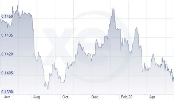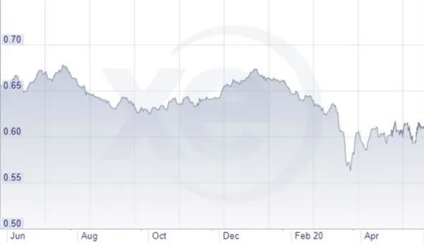 圖1 2019年6月(Jun. )至2020年4月(Apr. )期間,新西蘭元兌美元匯率走勢