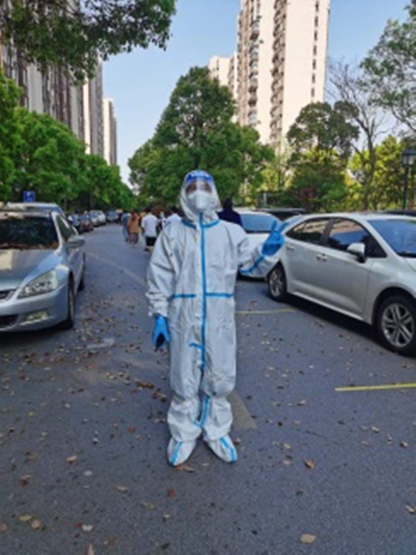 童煒,公司高管,從木業(yè)到物流,從生產(chǎn)服務(wù)到綠色循環(huán),童總一直在從事新的開拓性的嘗試,日常生活中也是一枚妥妥的暖男,他所在小區(qū)是一個(gè)只有兩棟樓的迷你小區(qū),鄰里之間都相識(shí)相知,連誰(shuí)家的貓貓狗狗都分辨得出來(lái),疫情降臨,小區(qū)出現(xiàn)了陽(yáng)性,志愿者的風(fēng)險(xiǎn)可想而知。樂(lè)觀豁達(dá)的童總沖鋒在前,不光帶領(lǐng)志愿者配合居委做好防疫的瑣碎事情,為了緩解大家的緊張感,還帶領(lǐng)大家是不是嗨皮一下,你看看,他們的姿勢(shì)是不是很解壓呢?